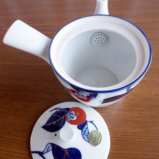 この茶器セットは紺・金・赤の独特の有田カラーで、柿の柄といい湯呑みと急須の姿かたちといい、渋いような可愛いような面白いような…憎めないフォルムと可愛いらしさが混在とした、素敵な茶器セットなんです。