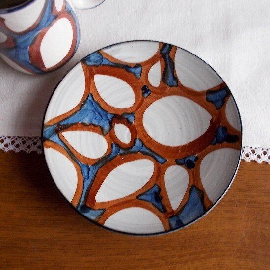 とても古い時代の商品です。色や柄、彩色の滲み、スレ、陶器の粒・ヒッツキ、凸凹等の粗雑感など、また湿った環境では土物陶器特有の土っぽい匂いがすることがあります。古い時代の製造品につきご了承ください。